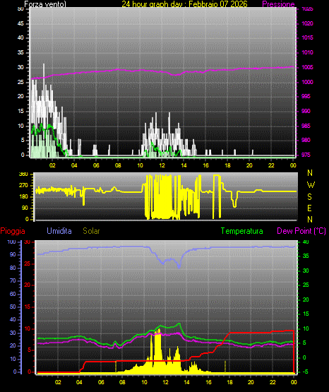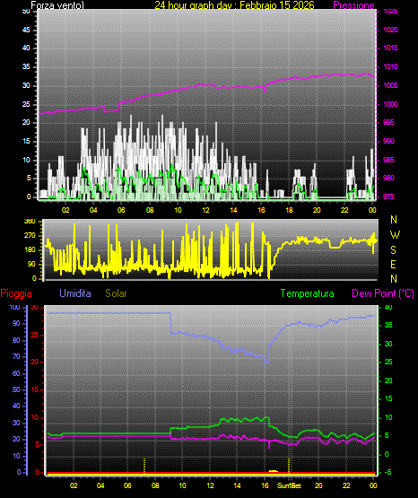 Velocità massima di raffica = 24.1 km/h da 262°( W ) giorno 02 tempo 23:12