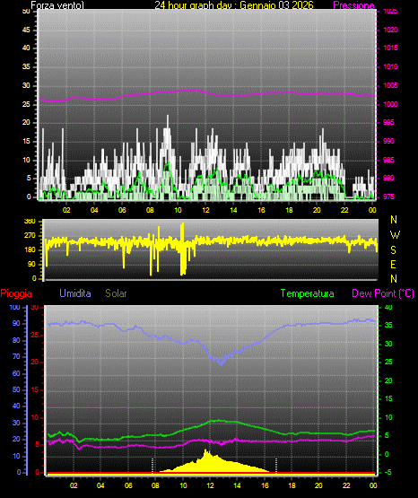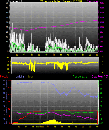 Barómetro maxima = 1025.2 mb giorno 12 tempo 10:43