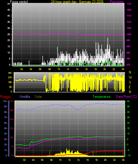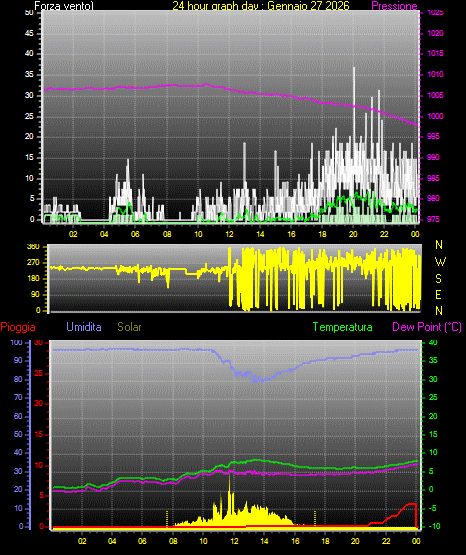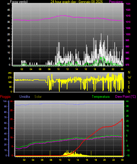 Il massimo windspeed = 27.8 kmh from 211°(SSW) giorno 09 tempo 13:41