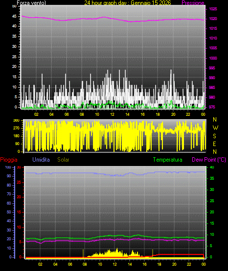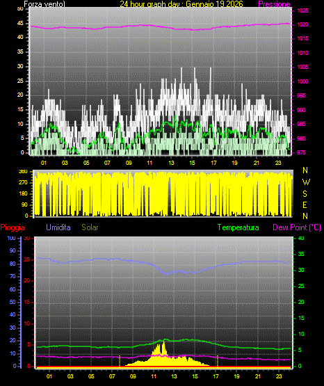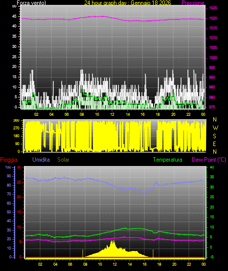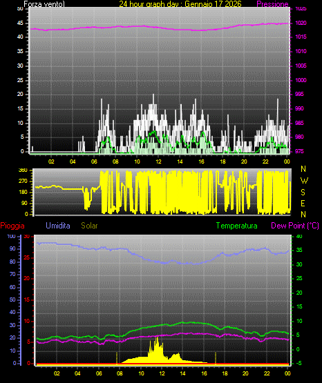 Velocità massima di raffica = 18.5 km/h da 295°(WNW) giorno 01 tempo 11:20
