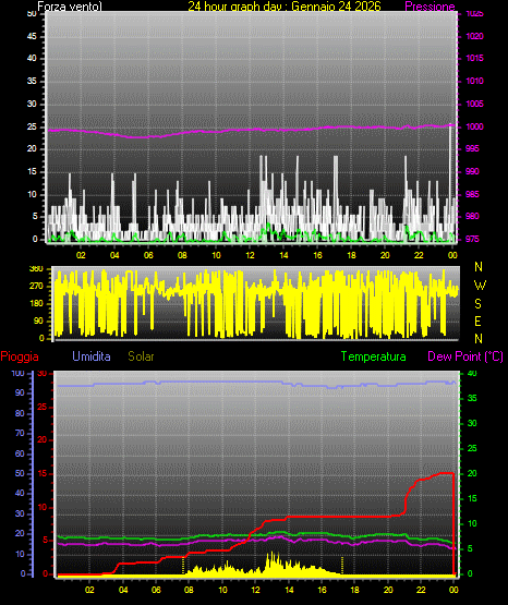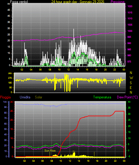 Velocità massima di raffica = 24.1 km/h da 247°(WSW) giorno 29 tempo 14:40