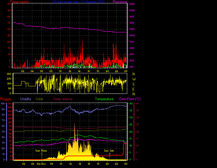 Il massimo windspeed = 13.0 kmh from 045°( NE) giorno 20 tempo 17:20