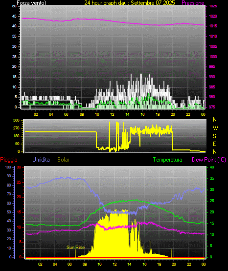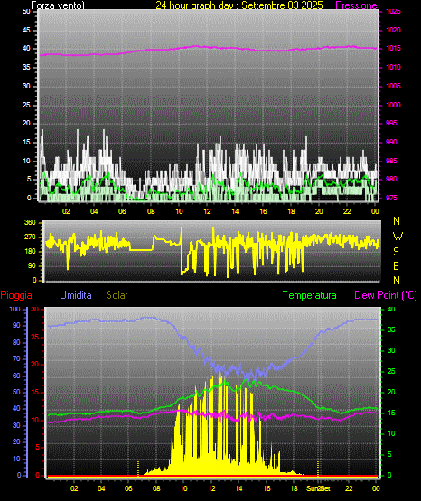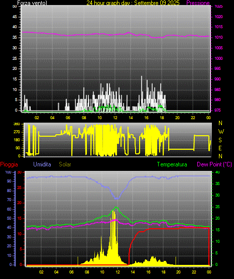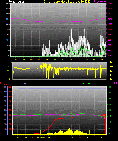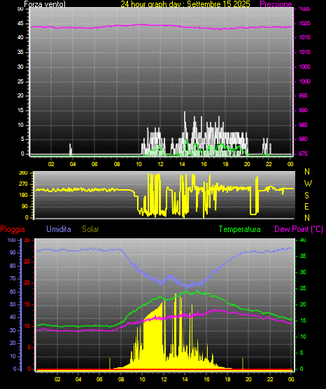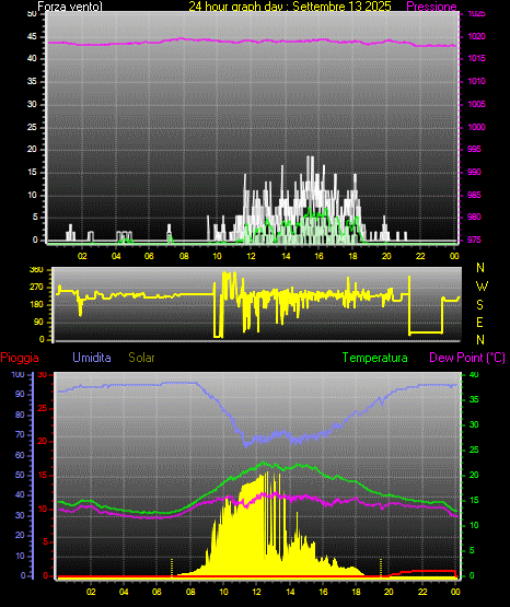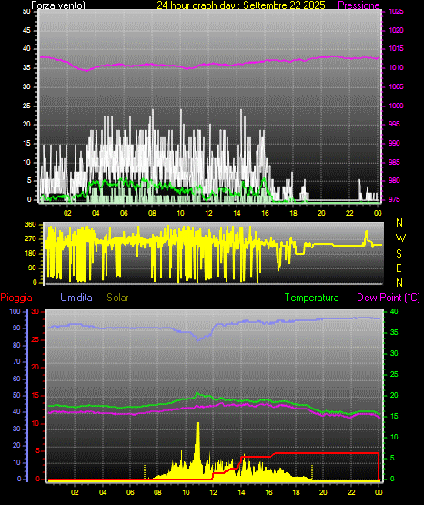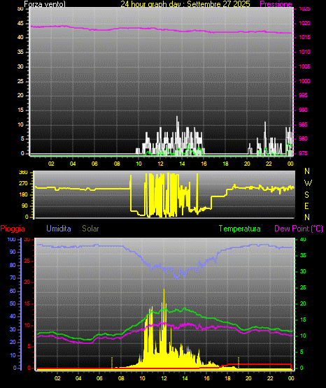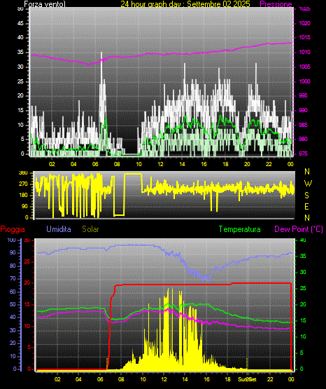 Velocità massima di raffica = 35.2 km/h da 250°(WSW) giorno 02 tempo 06:38
