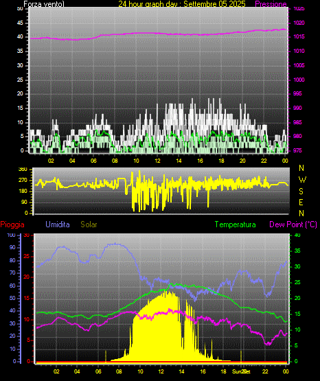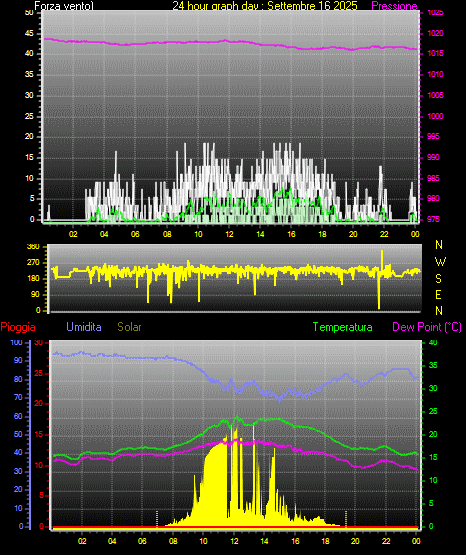 Il massimo windspeed = 16.7 kmh from 262°( W ) giorno 02 tempo 20:58