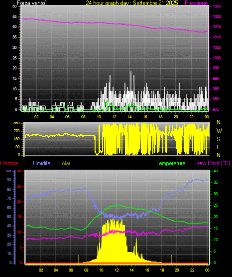 Velocità massima di raffica = 18.5 km/h da 210°(SSW) giorno 03 tempo 04:42