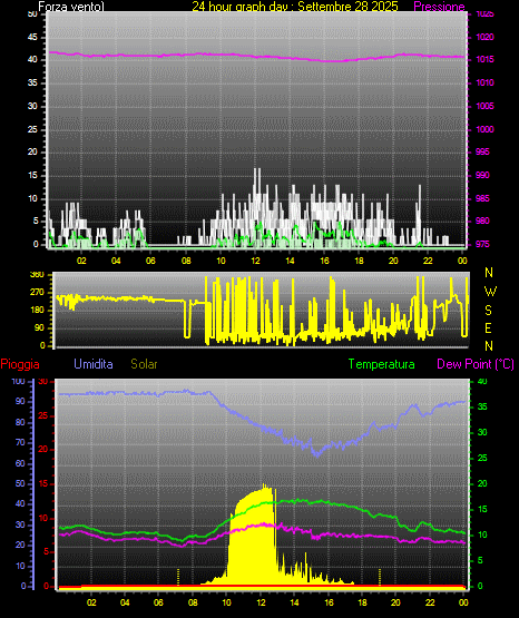 Massima pioggia per minuto = 0.2 mm giorno 28 tempo 01:26