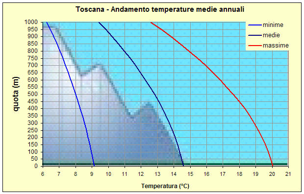 sottostante è riportato l'andamento altimetrico delle temperature medie annuali minime,